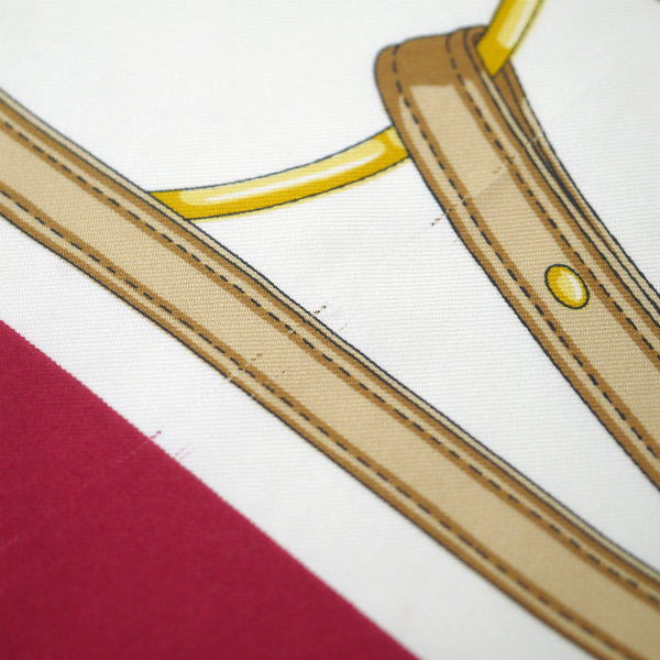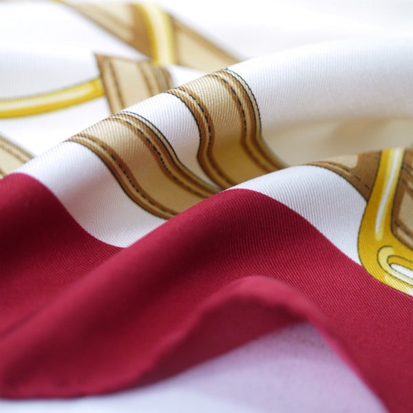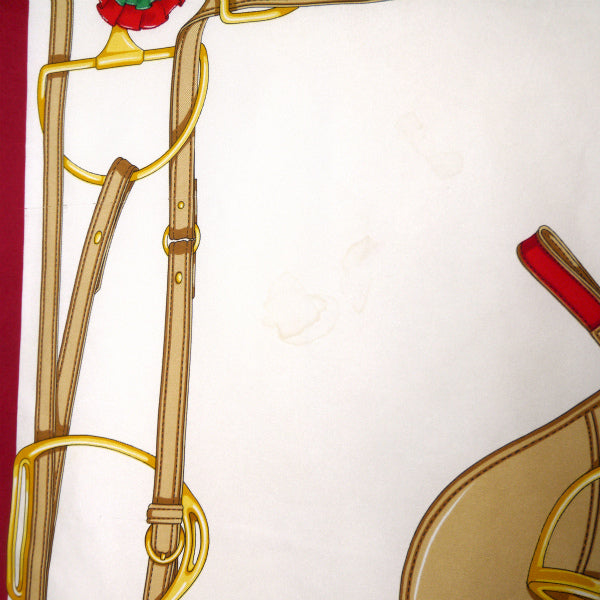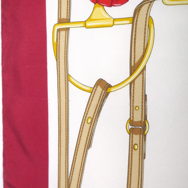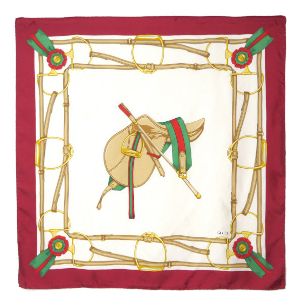 オールドグッチ サドル&ロゼット柄 大判シルクスカーフ(赤系)