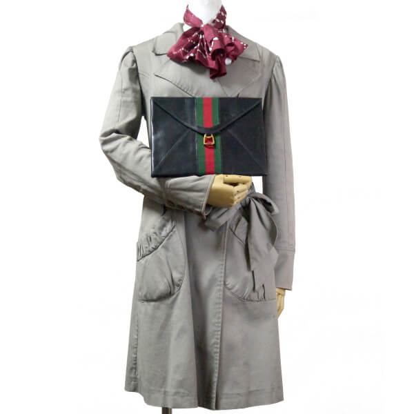 オールドグッチ レターカット総革シェリークラッチ&ポーチ(黒)