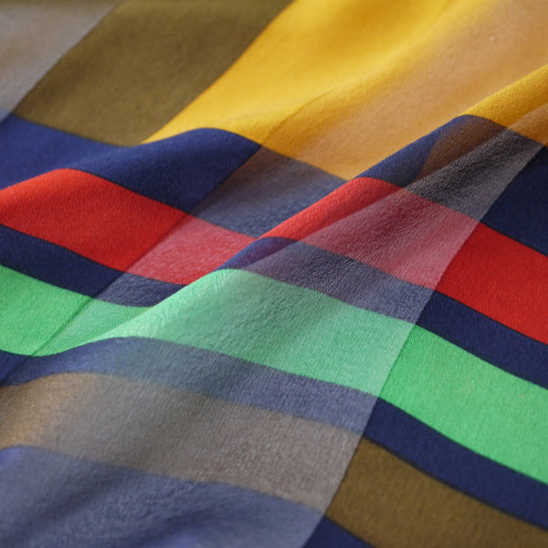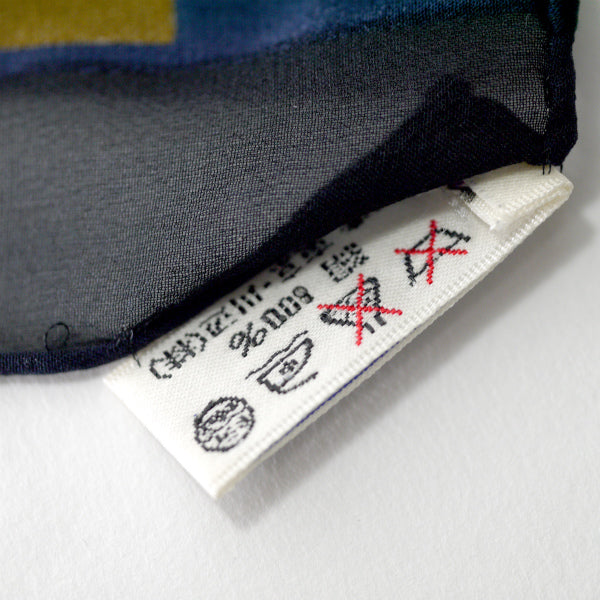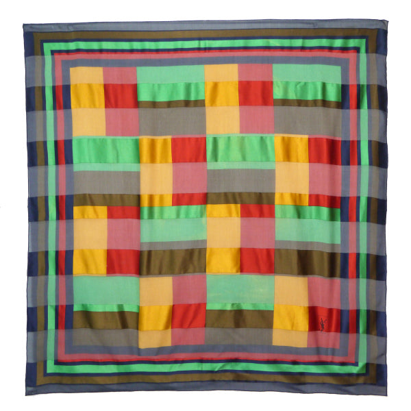 イブ サンローラン  シルク大判スカーフ マルチブロックカラー(紺系)