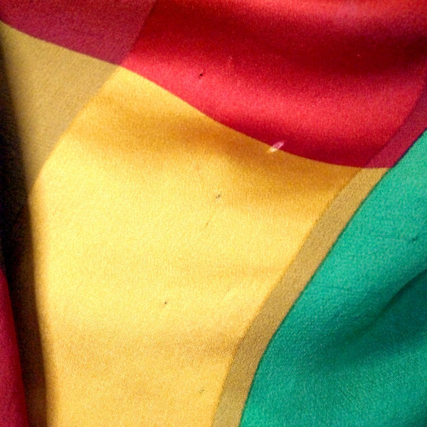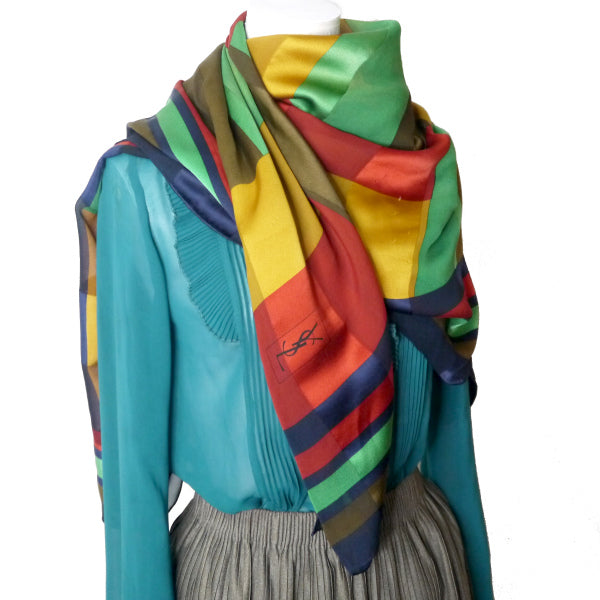 YVES SAINT LAURENT シルク大判スカーフ マルチブロックカラー(赤系)