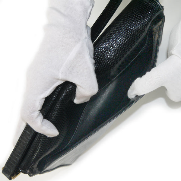 オールドグッチ 稀少Gロゴ高級リザードショルダー(黒)