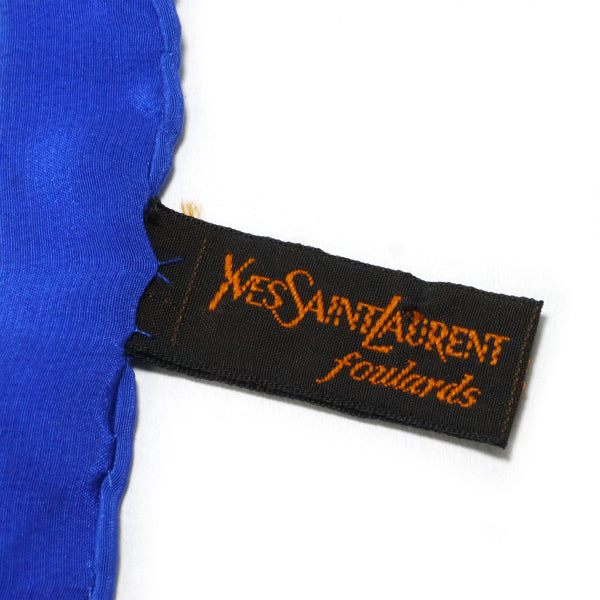 YVES SAINT LAURENT ロゴストライプ シルク中判スカーフ(青系)