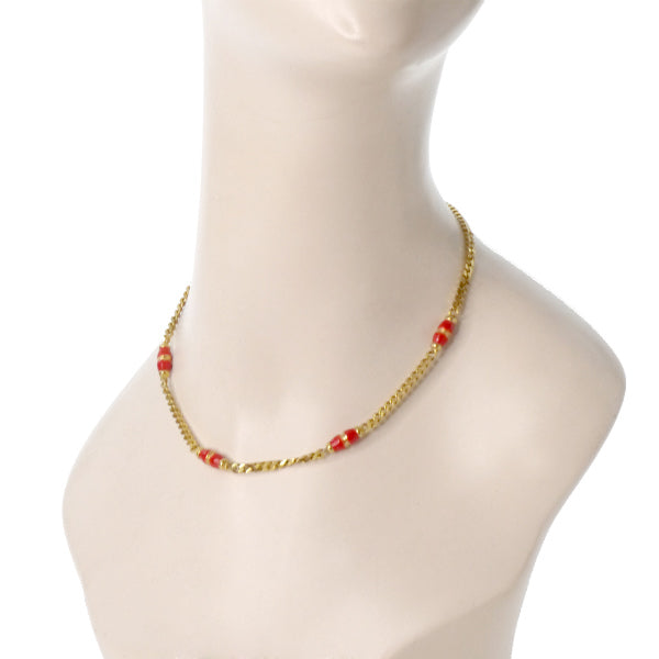 OLD CELINE クラスプチェーンVintageネックレス(ゴールド/赤)