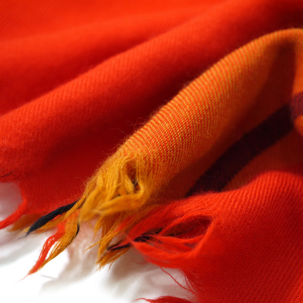 イヴ サンローラン  チェック柄ロゴウールストール(オレンジ系)
