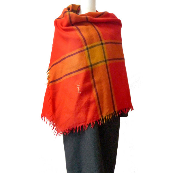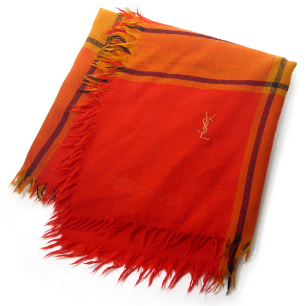 YVES SAINT LAURENT チェック柄ロゴウールストール(オレンジ系)