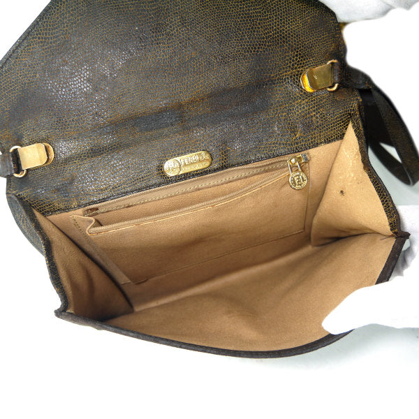 フェンディ レア!ヤヌス神リザード×スエードショルダー(濃茶)
