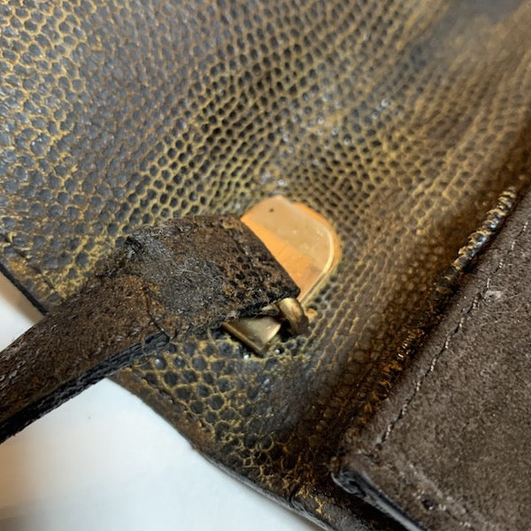Fendi レア!ヤヌス神リザード×スエードショルダー(濃茶)