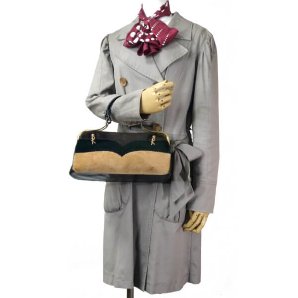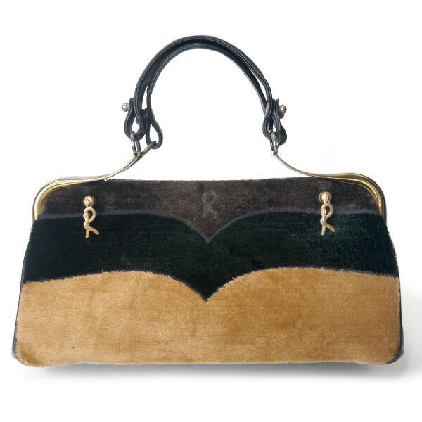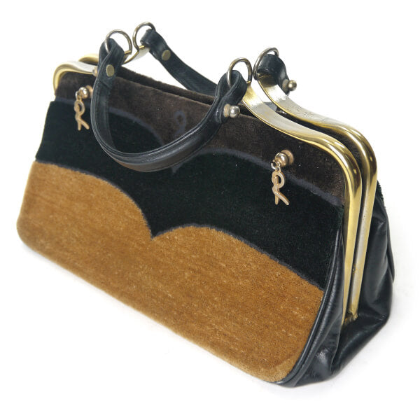 ロベルタ ウェーブライン柄カラベラ ハンドバッグ(黒・茶)