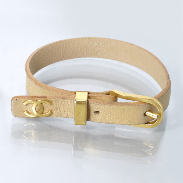ヴィンテージシャネル ココマークレザーブレスレット(ベージュ)