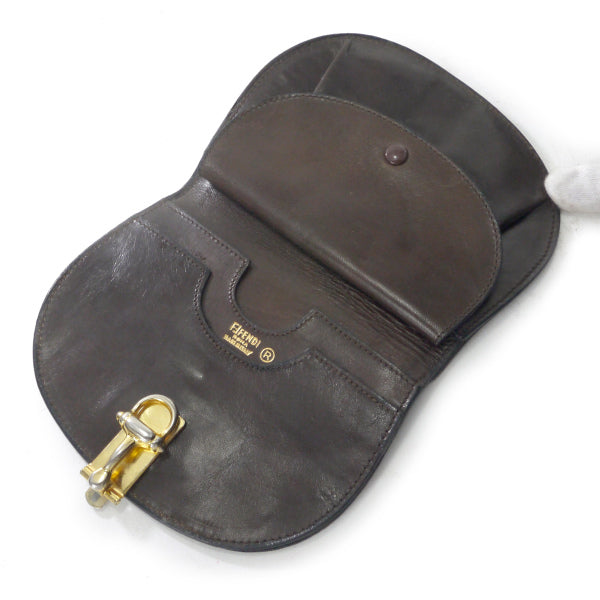 FENDI ズッキーノ柄ビット留め具ラウンド財布(茶/スエード)