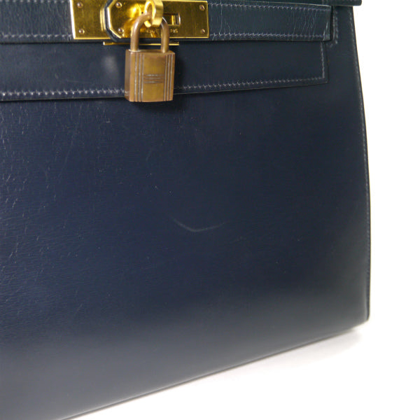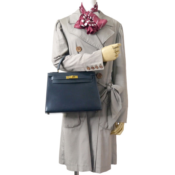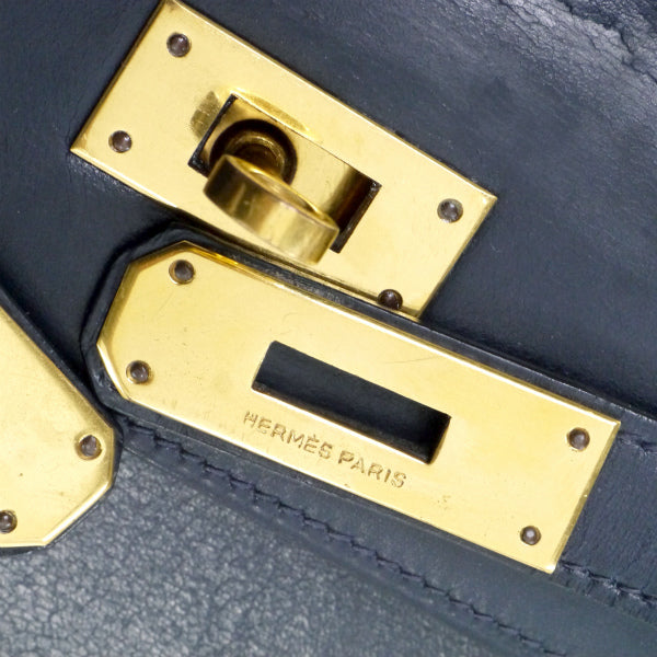 エルメス ヴィンテージケリー28 外縫い ボックスカーフ(濃紺)