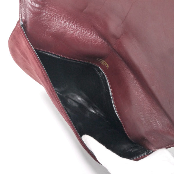 LOEWE アナグラムロゴ スエード半円クラッチ(ボルドー)