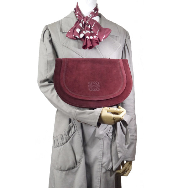 ロエベ アナグラムロゴ スエード半円クラッチ(ボルドー)