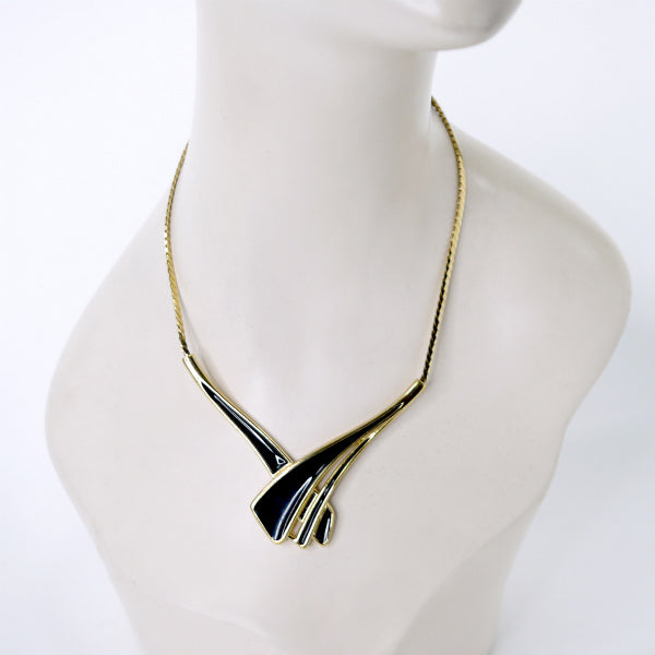 TRIFARI ブラックエナメルVintageネックレス(ゴールド)