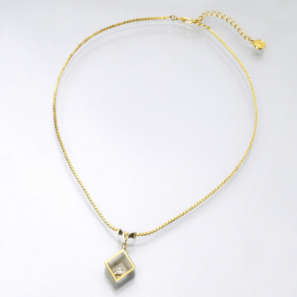 ダイヤ型のカットアウトフレームに、一粒ストーンのネックレス!