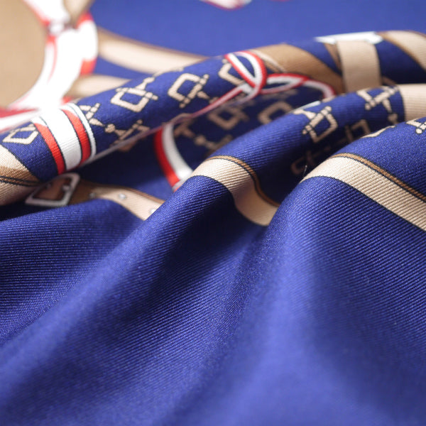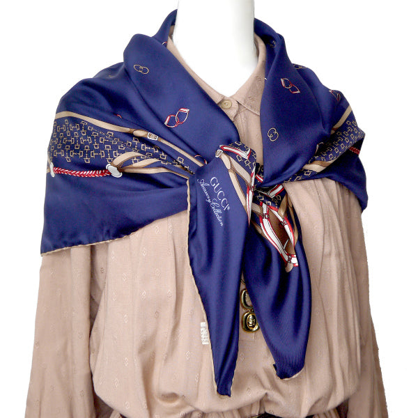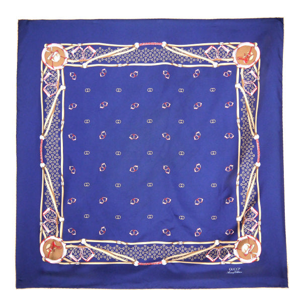 オールドグッチ アクセコ ビット&GG柄大判シルクスカーフ(青系)
