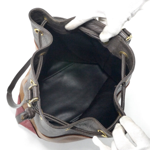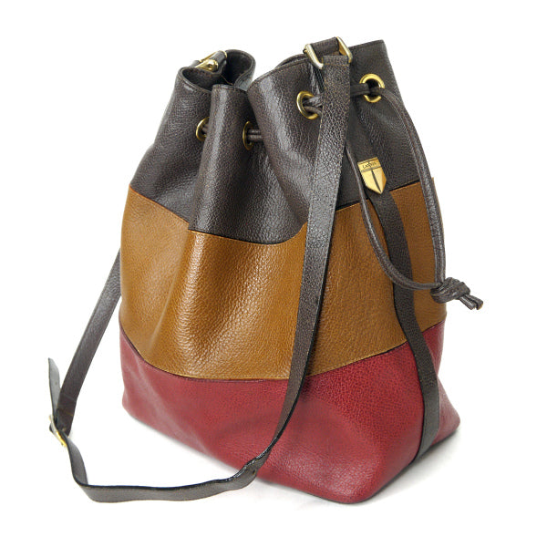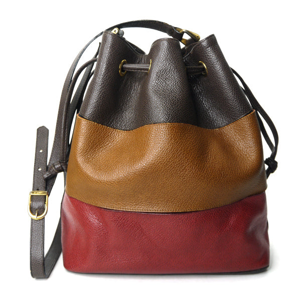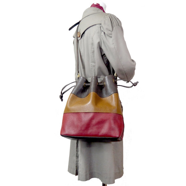 オールド ランバン 総革マルチカラーボーダー巾着ショルダー(赤/茶系)