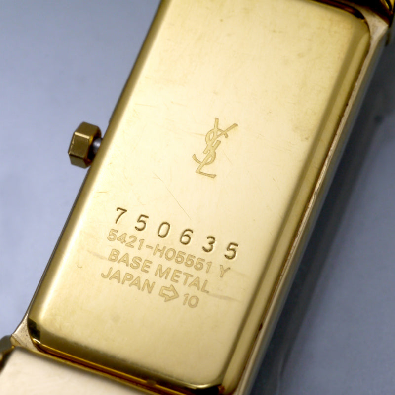 YVES SAINT LAURENT スクエアロゴバングルウォッチ(ゴールド)