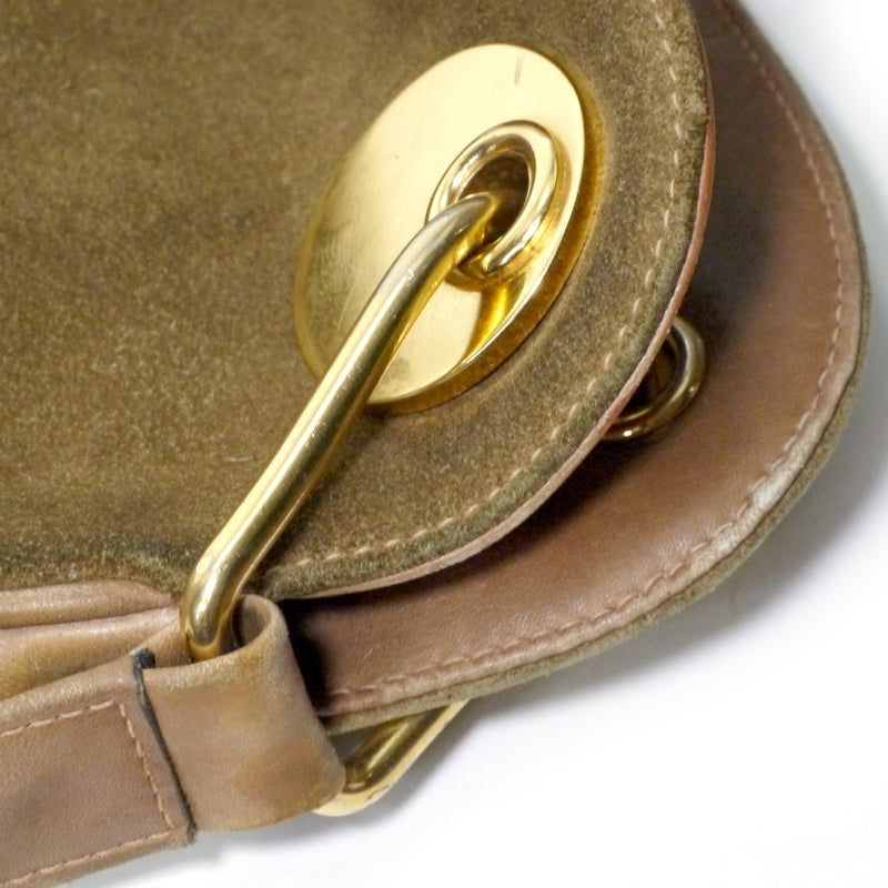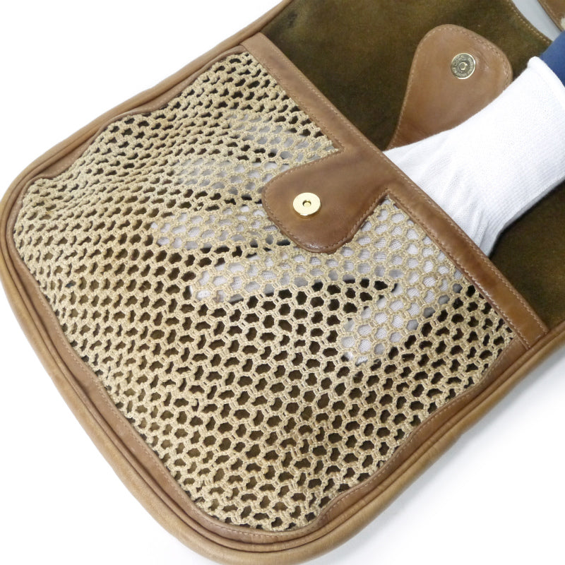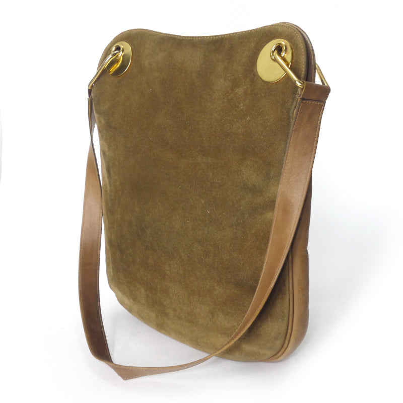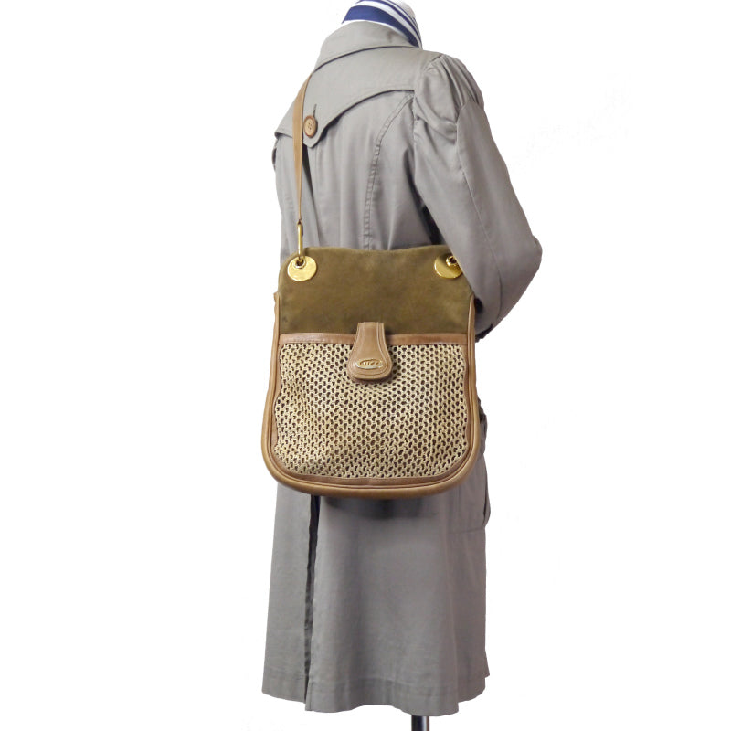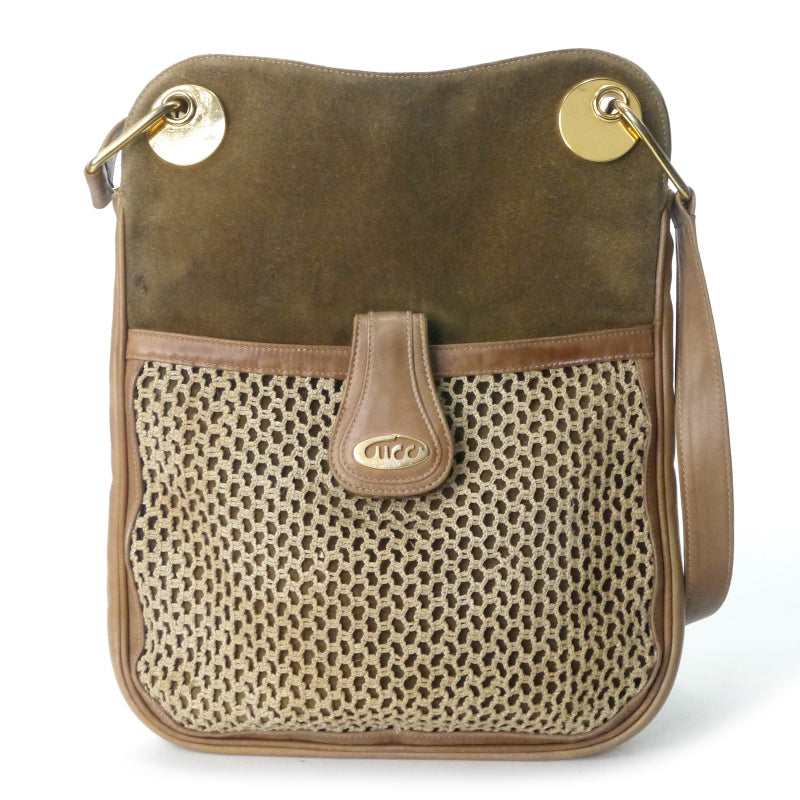 オールドグッチ 激レア!!筆記体ロゴ メッシュポケットスエードショルダー(茶)