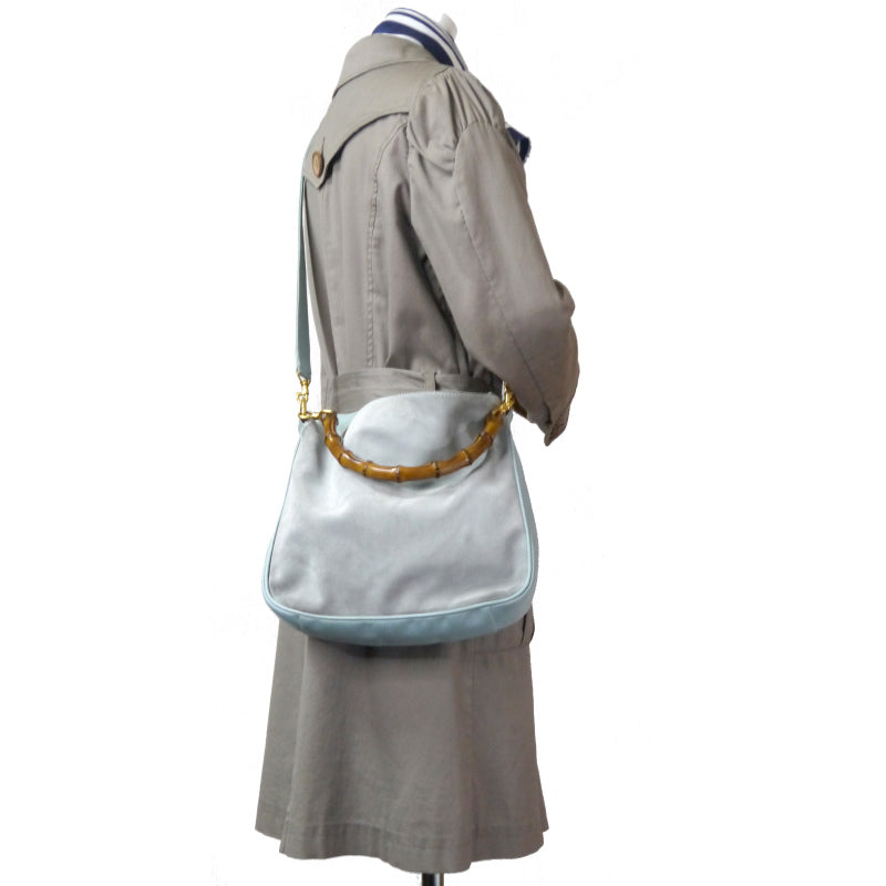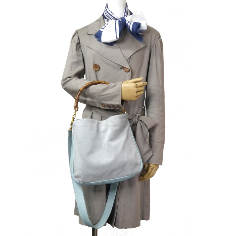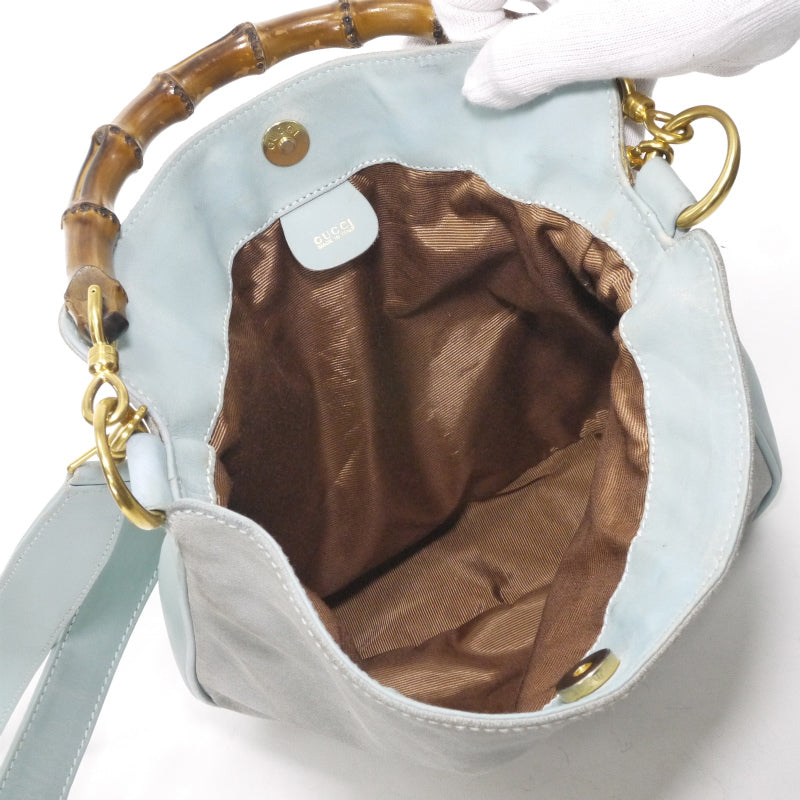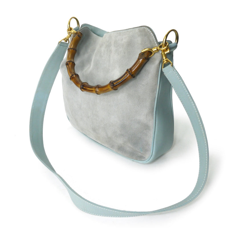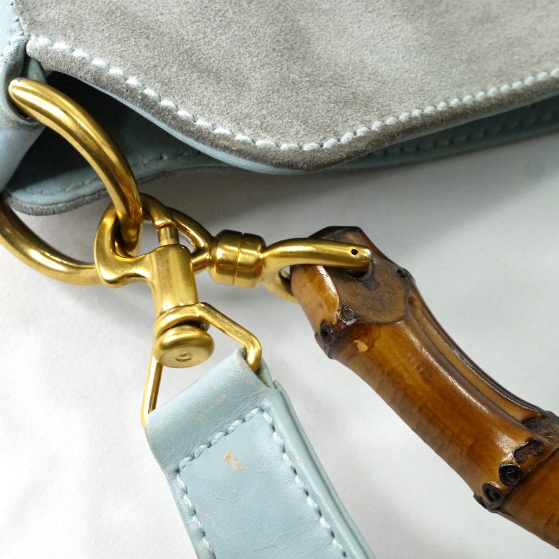 OLD Gucci レア!!ホーボー2Wayスエードバンブーバッグ(水色・中)