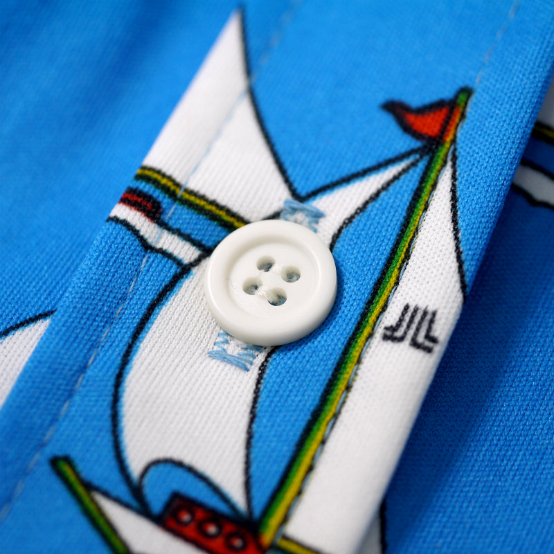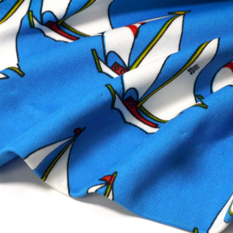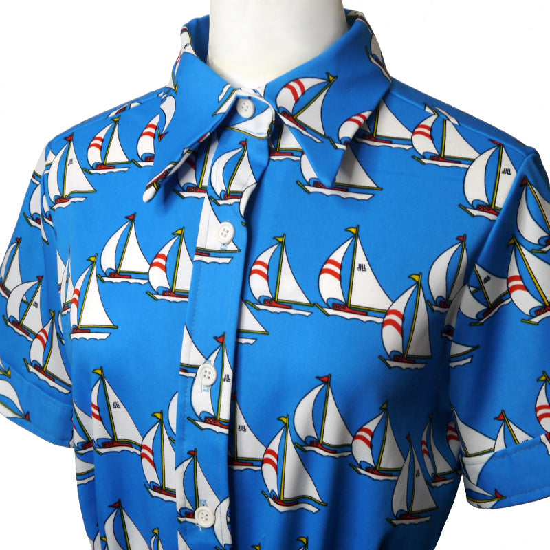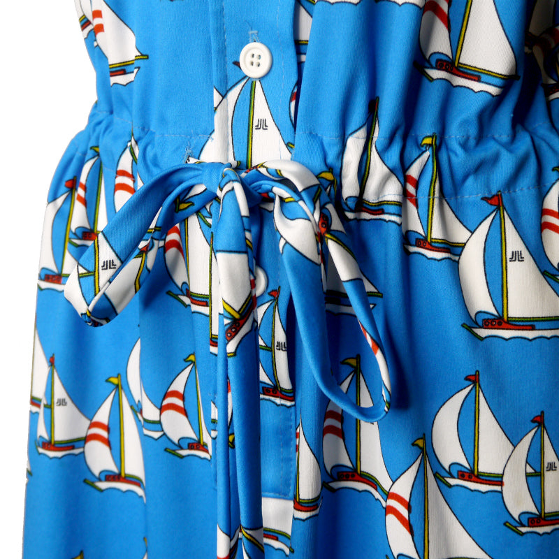 レトロなようでどこか近代的なニュアンスも漂う、ヨットが散りばめられたプリントがユニークなワンピース♪