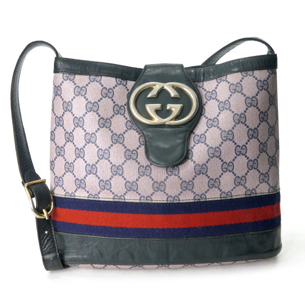 OLD Gucci 激レア!!G金具バケツ型ショルダー(ピンク×青)