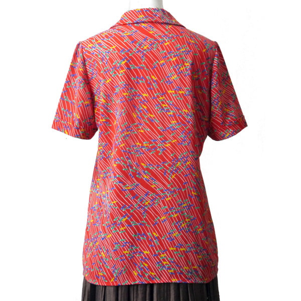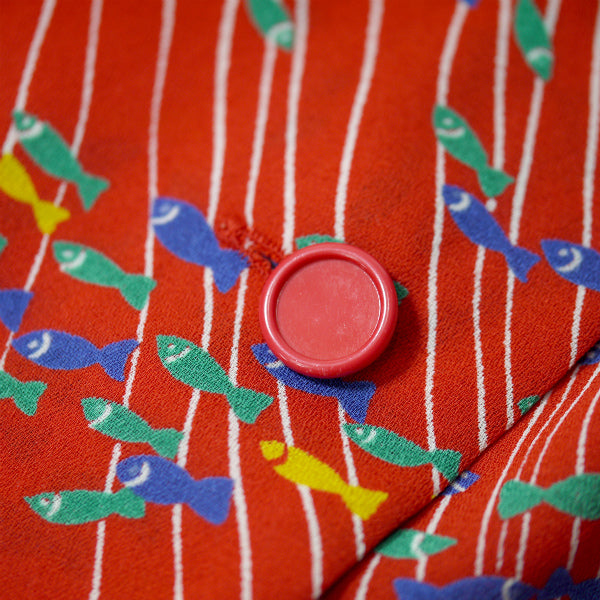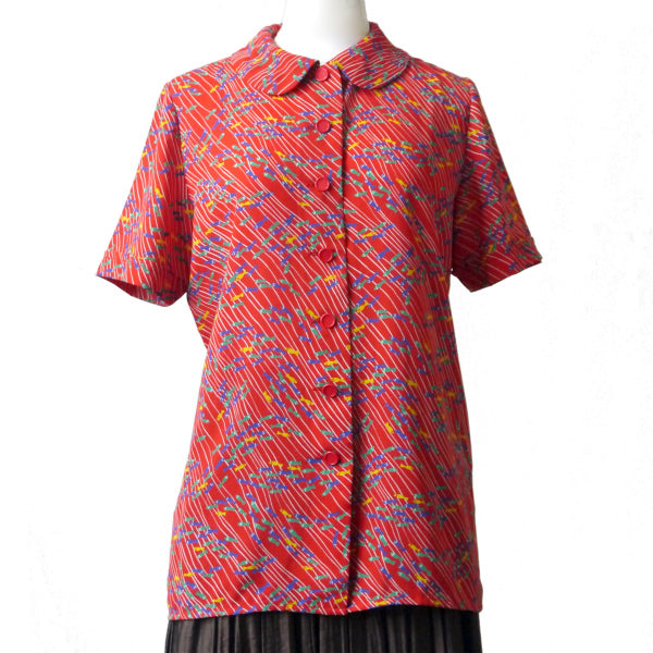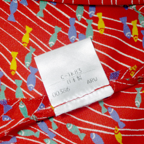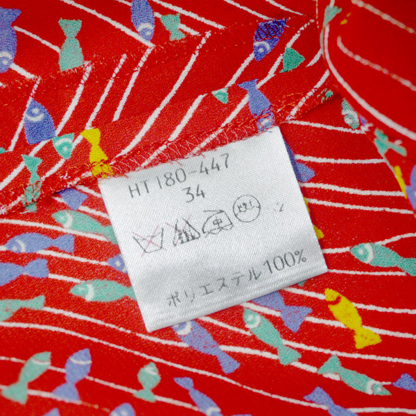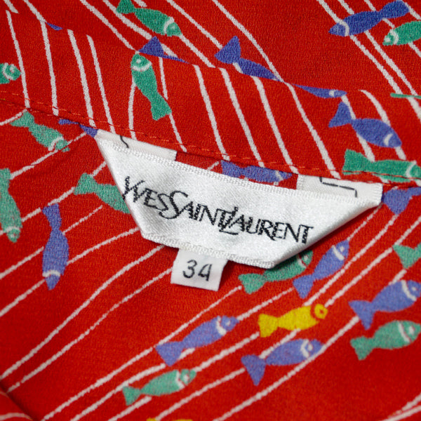 イブ サンローラン お魚柄♪丸襟シャツブラウス(赤系)