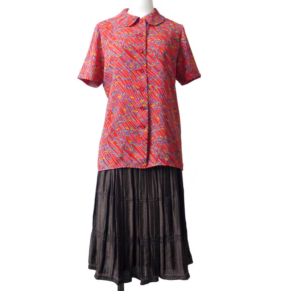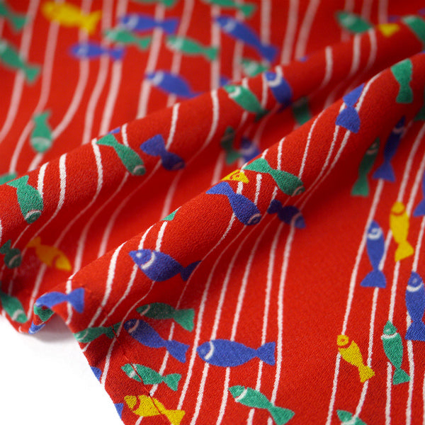 YSL お魚柄♪丸襟シャツブラウス(赤系)