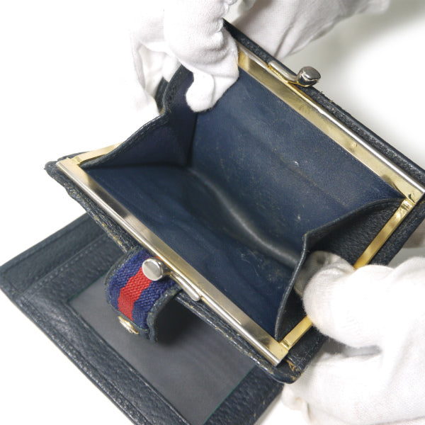 オールドグッチ マイクロGGミニシェリーがま口折財布(青)