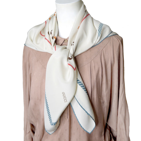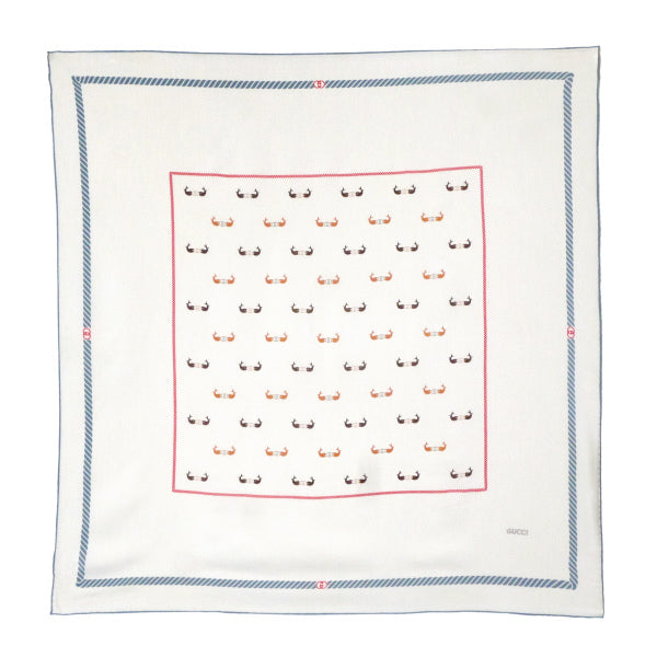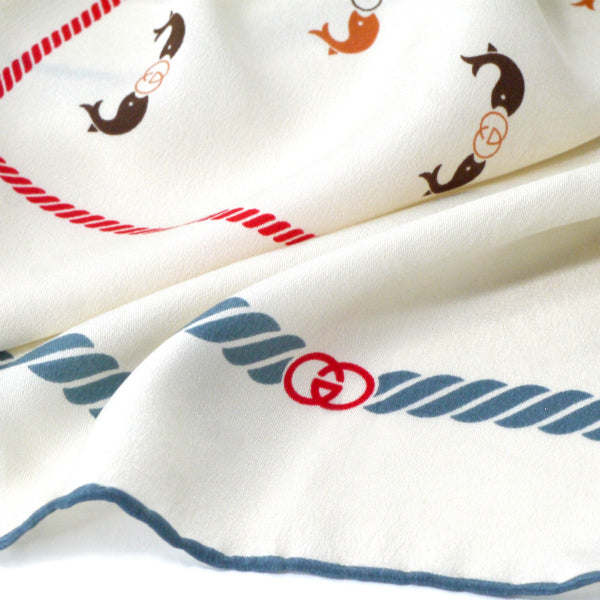 オールドグッチ レア!クジラG柄 大判シルクスカーフ(白系)