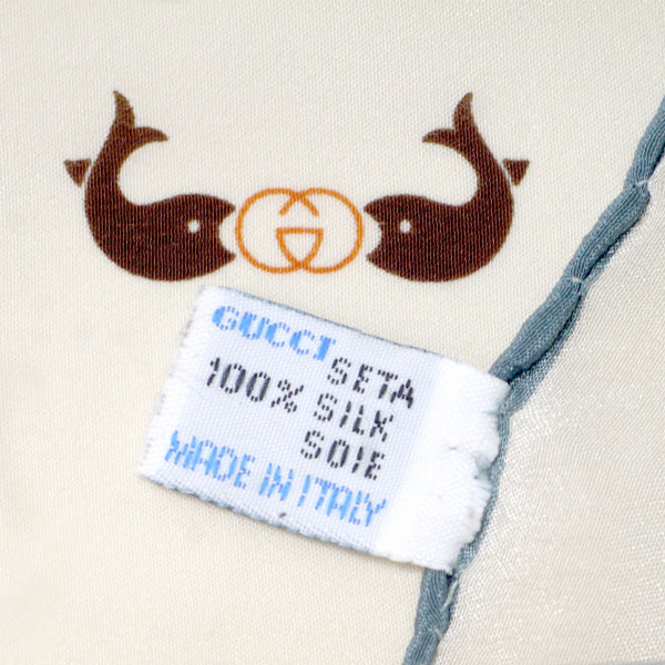 OLD Gucci レア!クジラG柄 大判シルクスカーフ(白系)