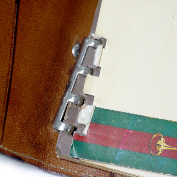*元から付属しているグッチのダイアリーは8穴タイプなのですが、取り外すとカバー自体は差し込み式となっております。ですから他のものに付け替える場合は、Aノート型のレフィル(穴なし)を差し込んで頂ければお使いになれます