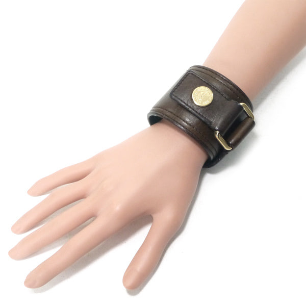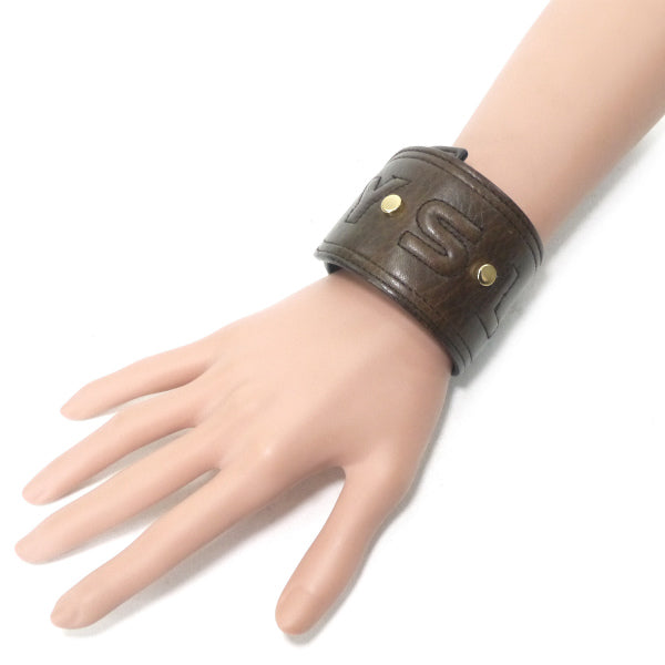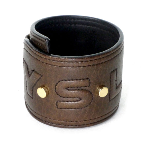 イブ サンローラン ロゴステッチ レザーブレスレット(濃茶)