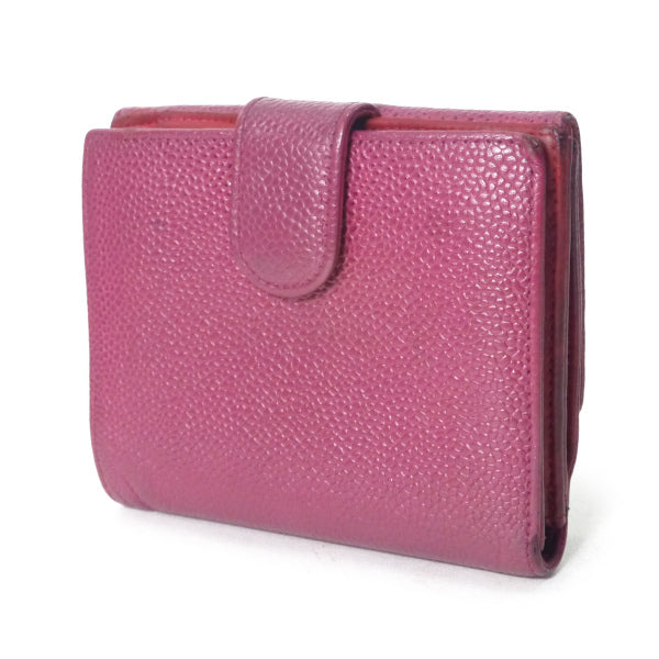 オールドシャネル ココステッチWホック折財布(ピンク/キャビアスキン)