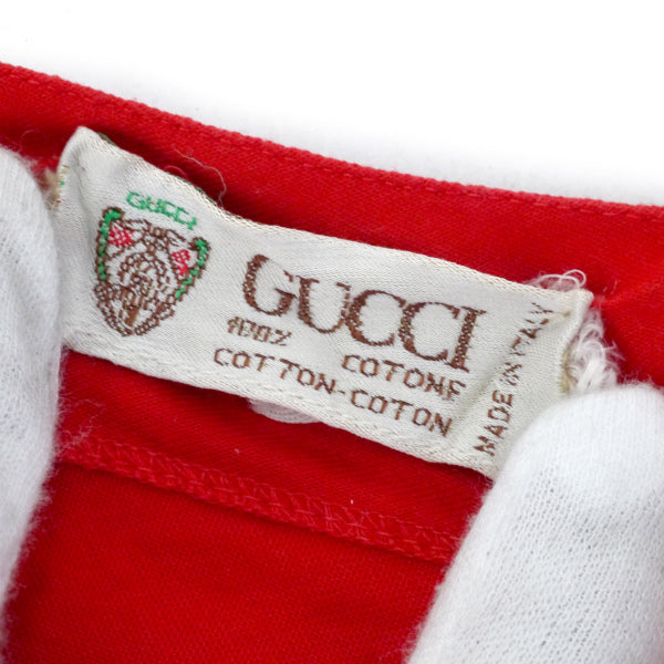 オールドグッチ ロゴ刺繍バッククロスフレンチスリーブTシャツ(赤)