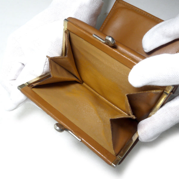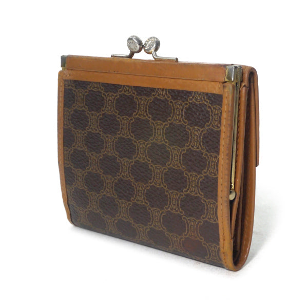 オールドセリーヌ マカダム柄がま口ミニ折財布(茶)