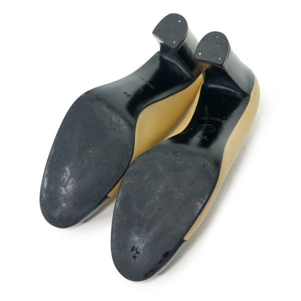 OLD CHANEL ココマークステッチバイカラーヒール(ベージュ/黒)