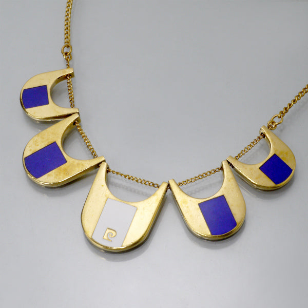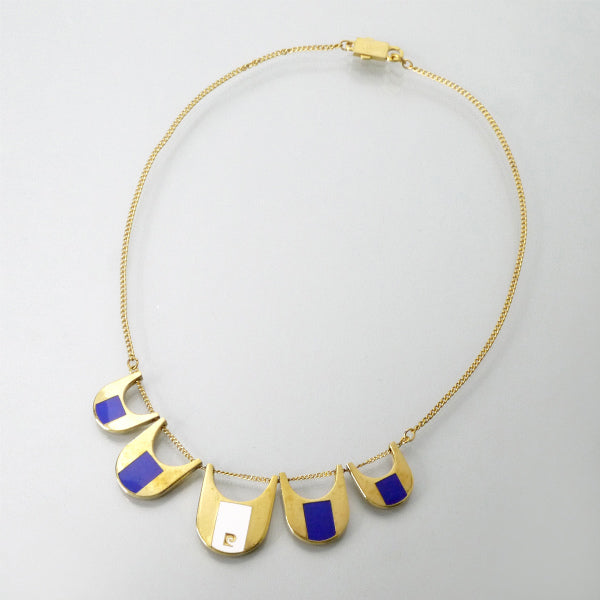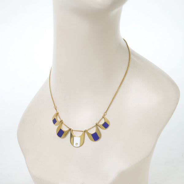 ピエールカルダン Pロゴ プレートチェーンネックレス(青/ゴールド)