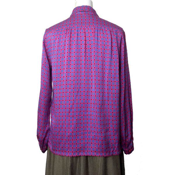 Old Dior チェック柄レトロシルクブラウス (ピンク系)
