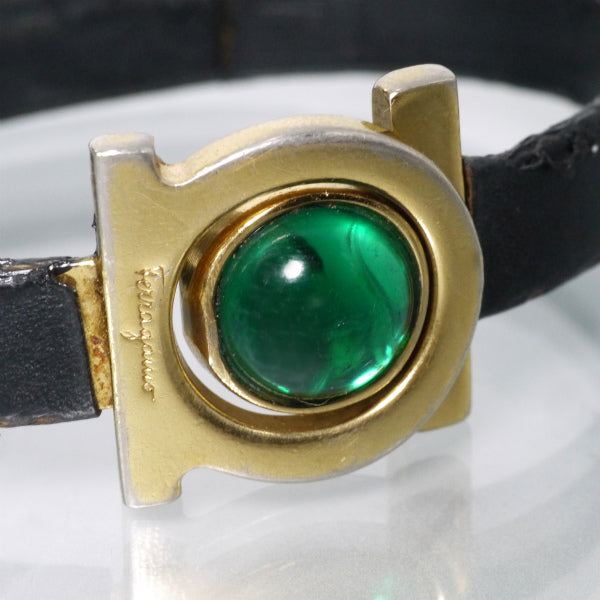 サルヴァトーレ フェラガモ  ガンチーニ カラーストーンレザーバングル(緑/黒)