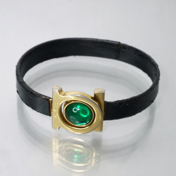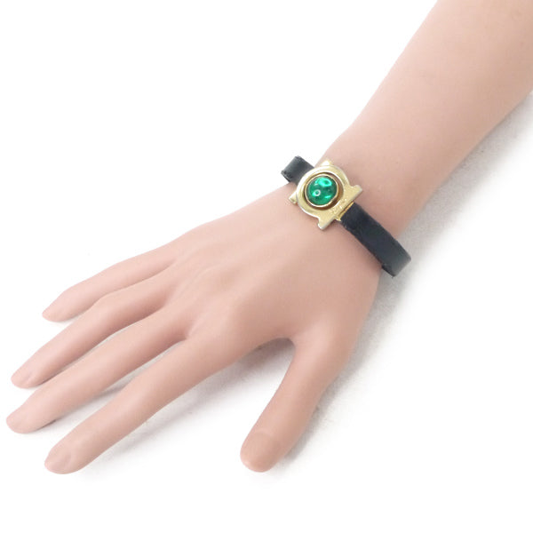 Salvatore Ferragamo ガンチーニ カラーストーンレザーバングル(緑/黒)