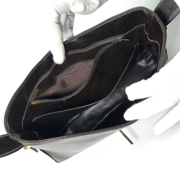 オールドグッチ 総革シェリー×Gロック金具セミショルダー(濃茶)