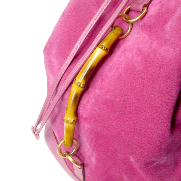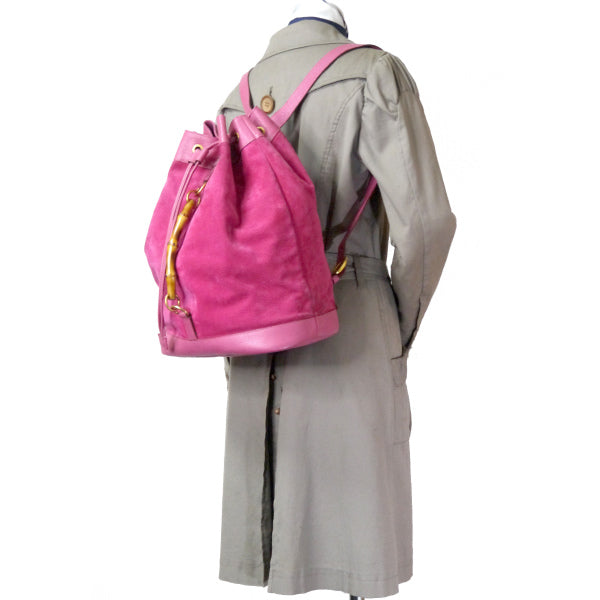 OLD Gucci スエードバンブー巾着リュック(ピンク)
