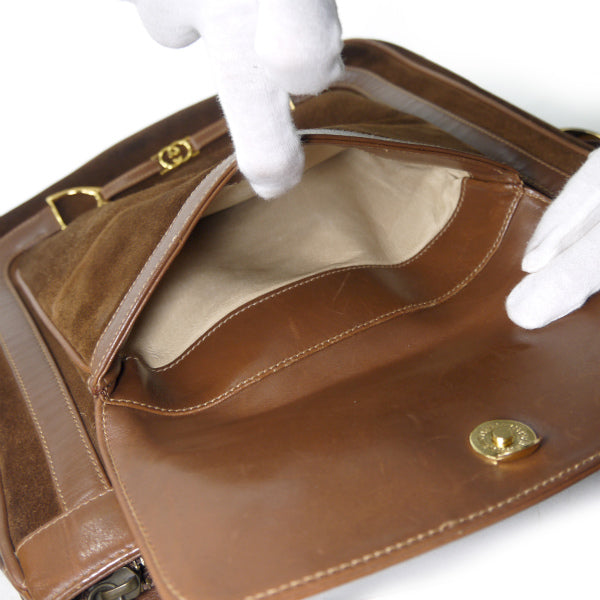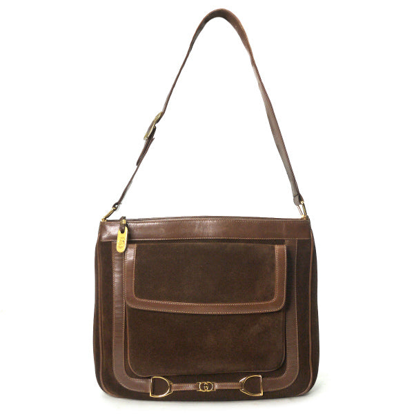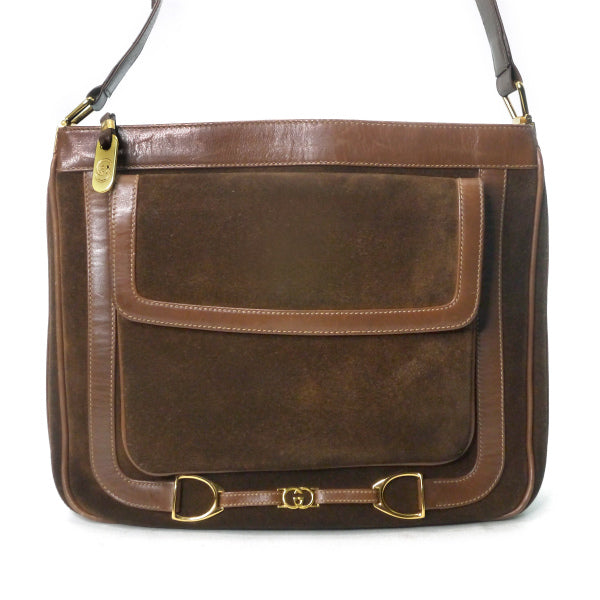 OLD Gucci レア!!G×ビット金具フロントポケットショルダー(茶・スエード )