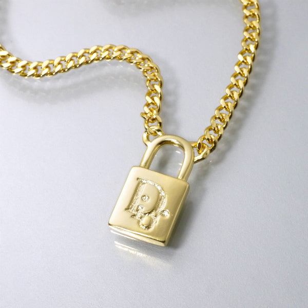 C.Dior 南京錠モチーフロゴネックレス(ゴールド)