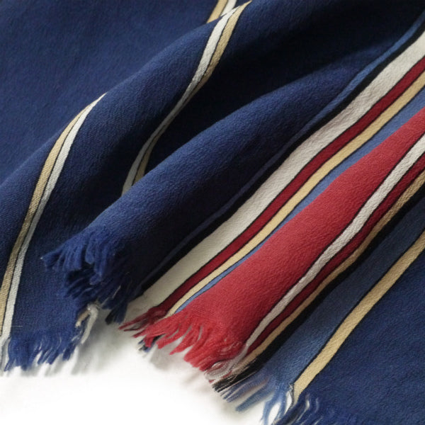 イブ サンローラン  チェック柄フリンジシルクロングスカーフ(ネイビー系)