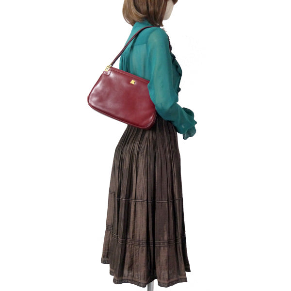 LANVIN 総革がま口ハンドバッグ(ボルドー)