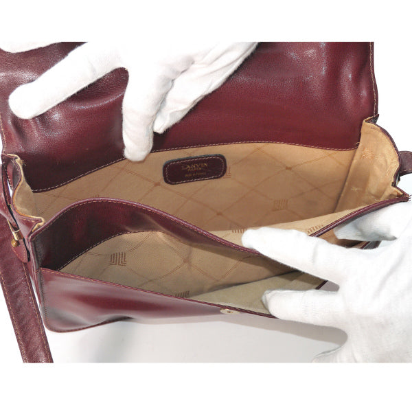 LANVIN エンボスロゴ総革ショルダー(ボルドー)