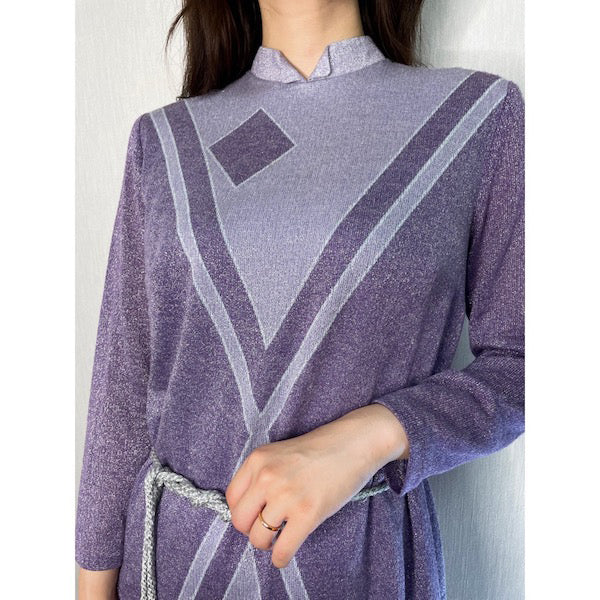 目を引くパープルにシルバーラメ入りのボックスシルエットワンピース♪
