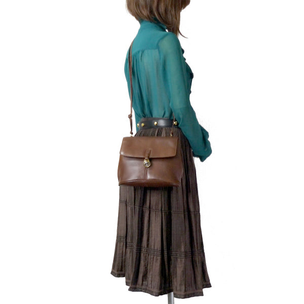 オールドグッチ 総革GG金具スクエアミニショルダー(濃茶)